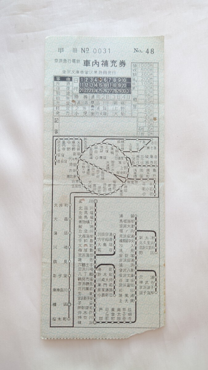 - ▽京浜急行(京急)・金沢文庫車掌区発行▽車内補充券▽軟券乗車券
