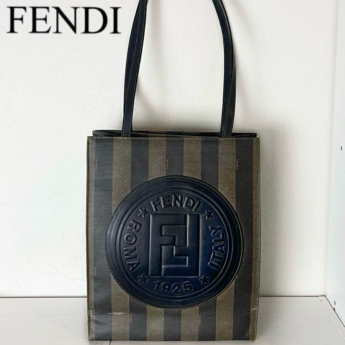 - FENDI フェンディ ペカン FFロゴ デカロゴ ブランドロゴ トートバッグ バック PVC レザー A4 肩掛け 肩かけ 本革 本皮 ブラウン