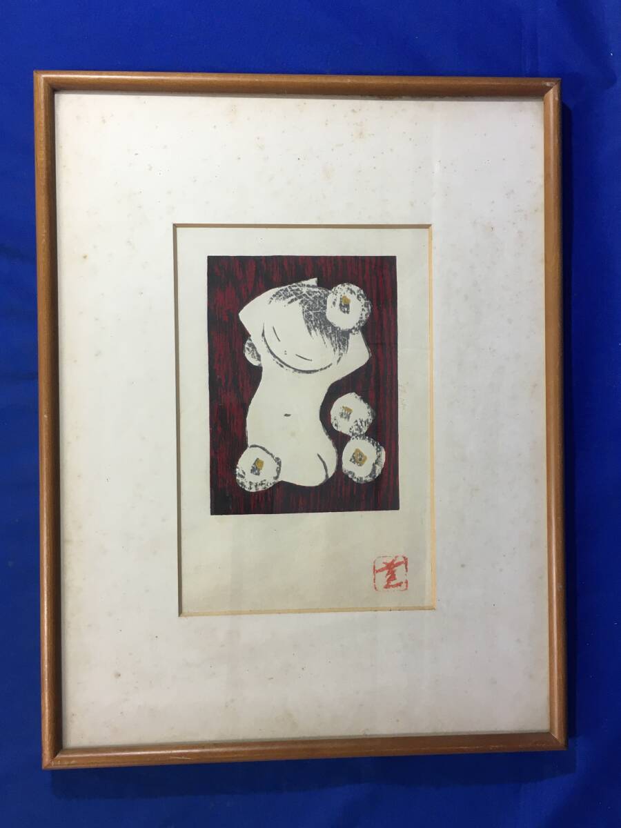 - AG590サ△河野薫 木版画 「つばき(童)」 額装 岳サイズ:約30×39cm 絵画/美術/アート/作品