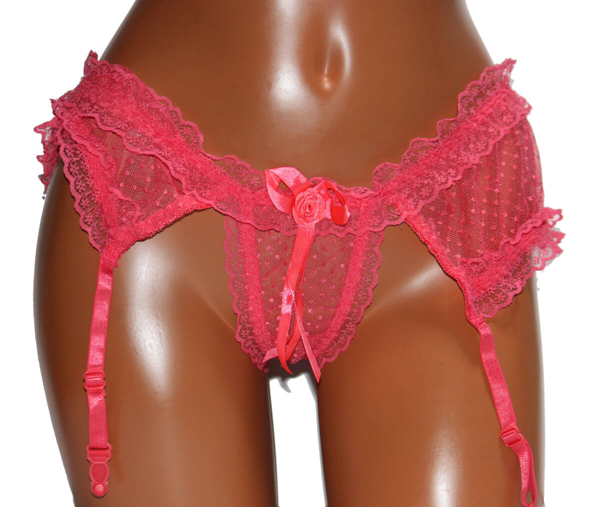 > NA Tバック & ガーターベルト 付 レース ランジェリー 下着 レディース セクシー ショーツ エロ 過激 シースルー 329 ローズピンク