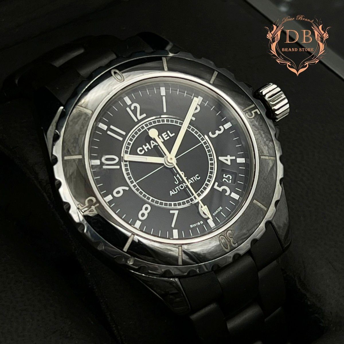 > シャネル J12 38mm 自動巻き ブラック セラミック 艶消しブラックベルト CHANEL メンズ 腕時計 ビジネス 稼働品 オートマティック