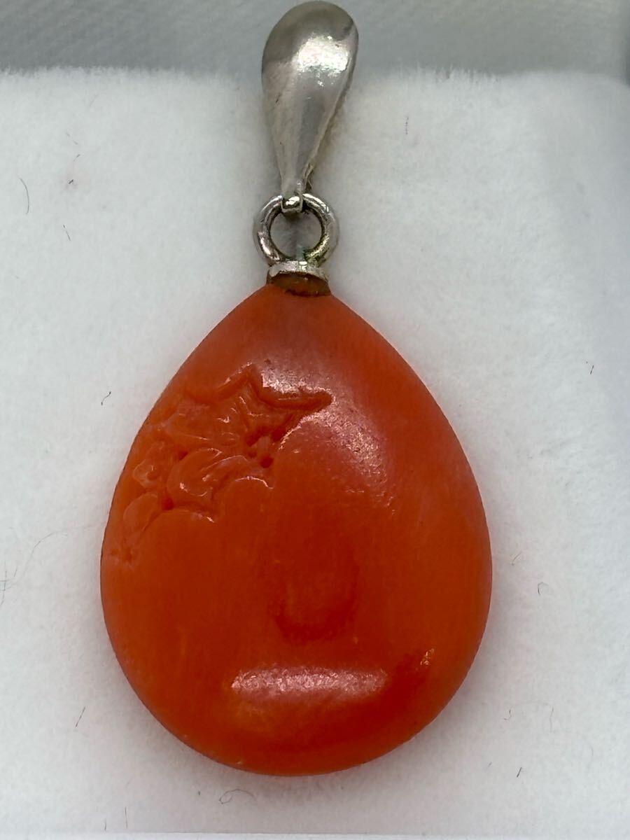 - 天然血赤珊瑚 国産サンゴ ペンダントネックレス(s766)