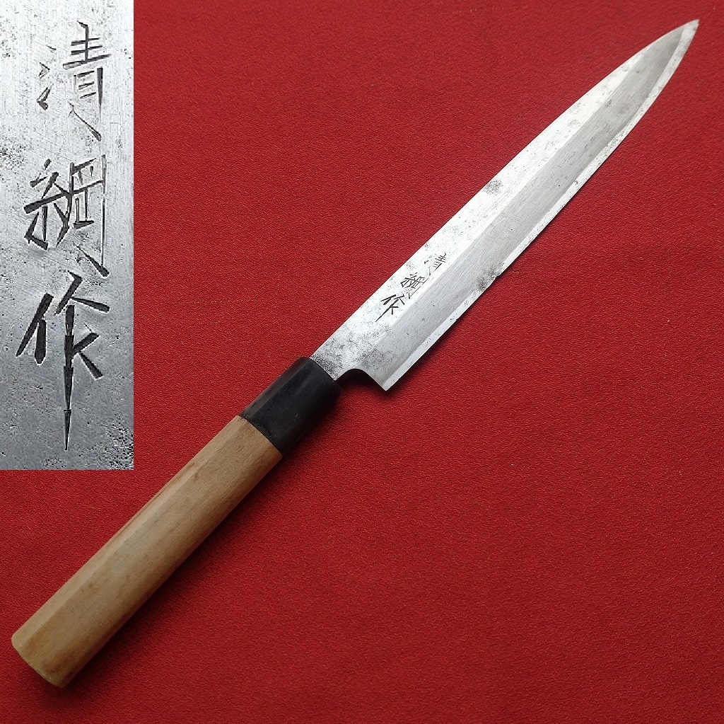 - 刺身包丁 清綱作 刃長約200㎜ 峰厚約3.2㎜ 片刃 和包丁 栗型柄 柳刃包丁 正夫 調理器具 刃物 日本製 【4284】
