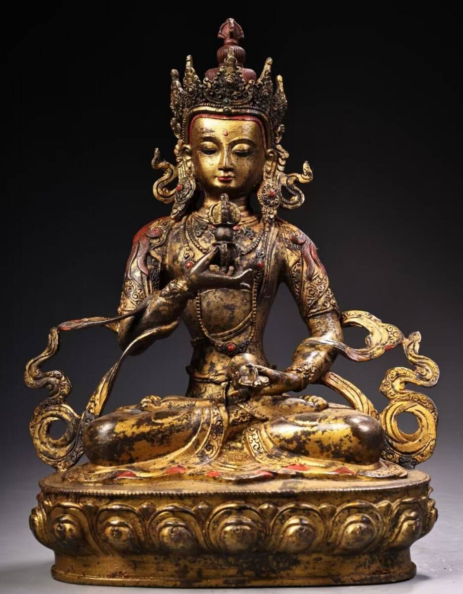 - 仏像 清代 旧蔵 チベット古寺 古銅泥金蔵伝金剛薩位相仏 銅製 銅琉金 唐物 收蔵品 時代物 古美術 古置物 希少珍品 供養品 文房具 仏教6.30
