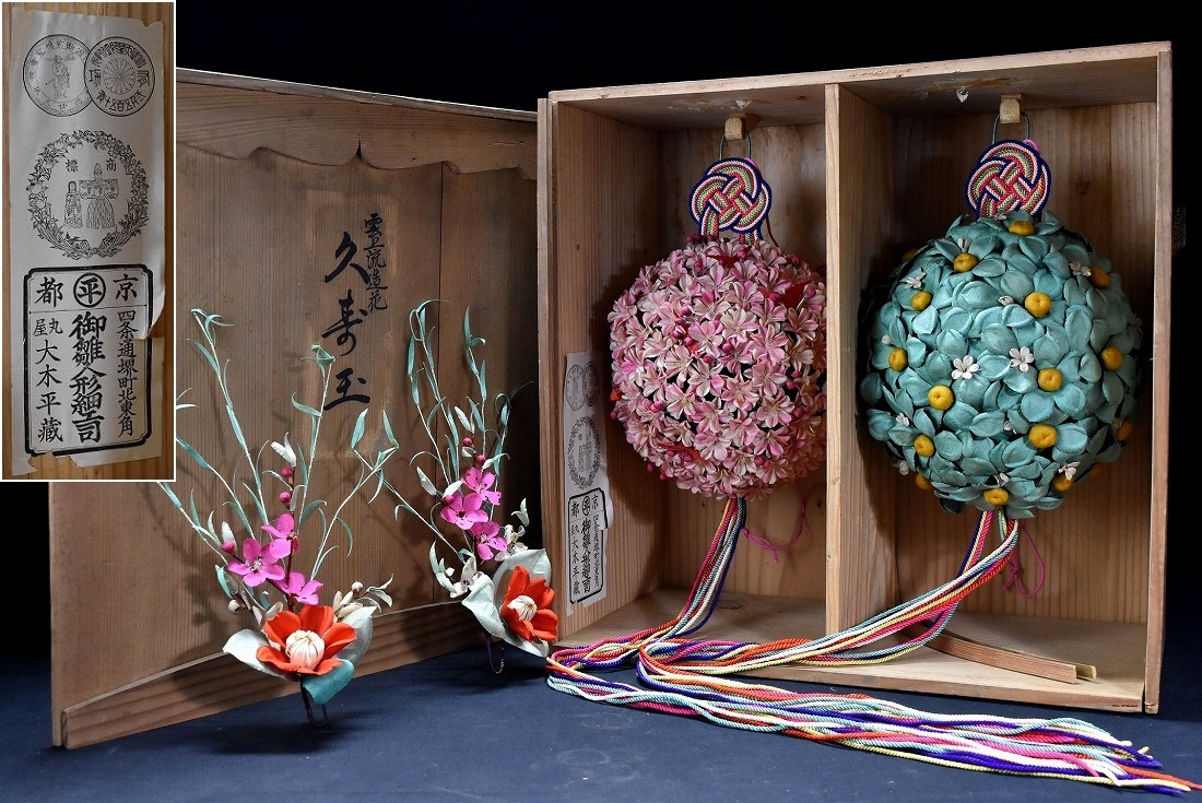 - 有職雲上流造花(大)久寿玉 くす玉【京都 丸屋 大木平蔵 丸平】共箱 雛人形 雛道具