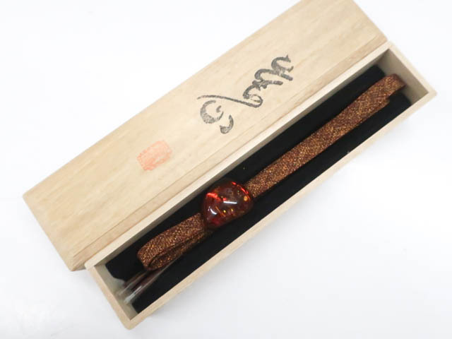 - 《古美術京松》リサイクル着物 未使用品 和装小物 帯締め 帯締 三分紐 帯留め付き 落款入り 木箱付き sok7w06-36