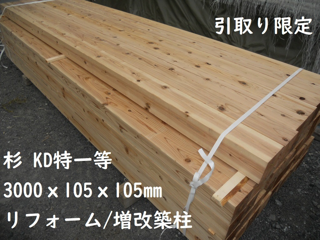 - 【引取】 杉 KD特一等 長3000X105X105mm 修繕柱 増築柱 建築 角材 リフォーム 木材 材木 スギ 人工乾燥 10.5cm プレーナー 最安値挑戦