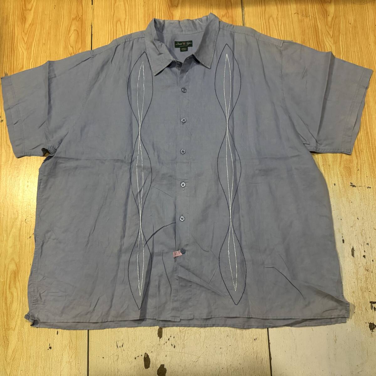 > 即決・クリックポスト発送・輸入古着・DAVID TAILORの刺繍入りの開襟シャツ・綿麻素材・グレー・3XL(日本の6Lに近いサイズ感です)