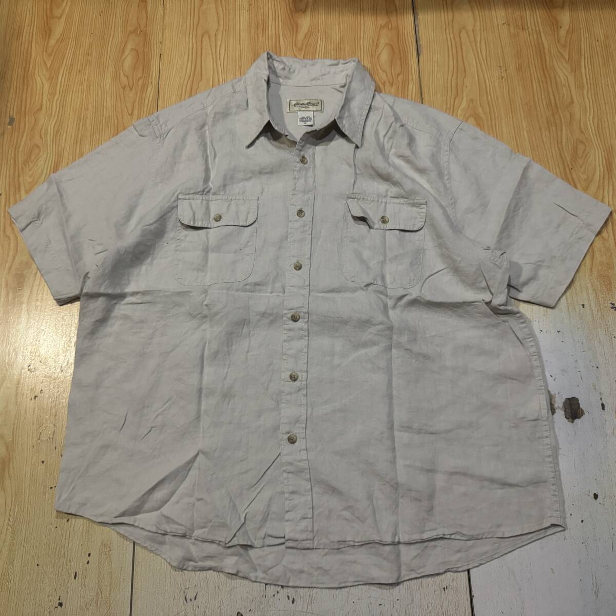 - 即決・クリックポスト発送・輸入古着・Eddie Bauer・エディーバウアーの麻100%素材の半袖シャツ・ベージュ・XL(日本の3Lくらいです)