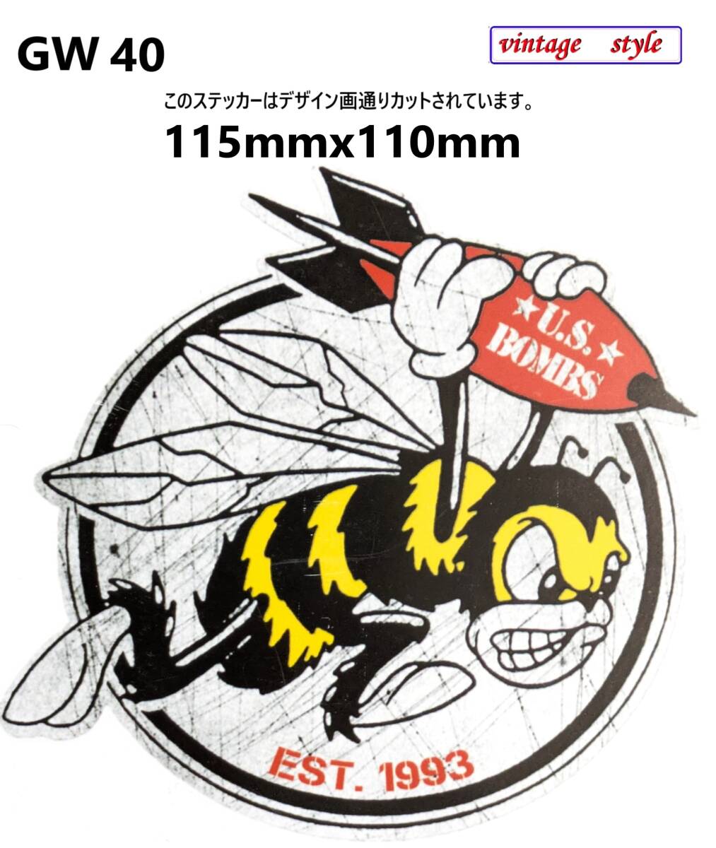 > GW40-7 特価 ヴィンテージスタイル ミリタリー Bee Bomb 蜂 爆弾 ダメージ加工 軍 アーミー ステッカー デカール レトロ ガレージ