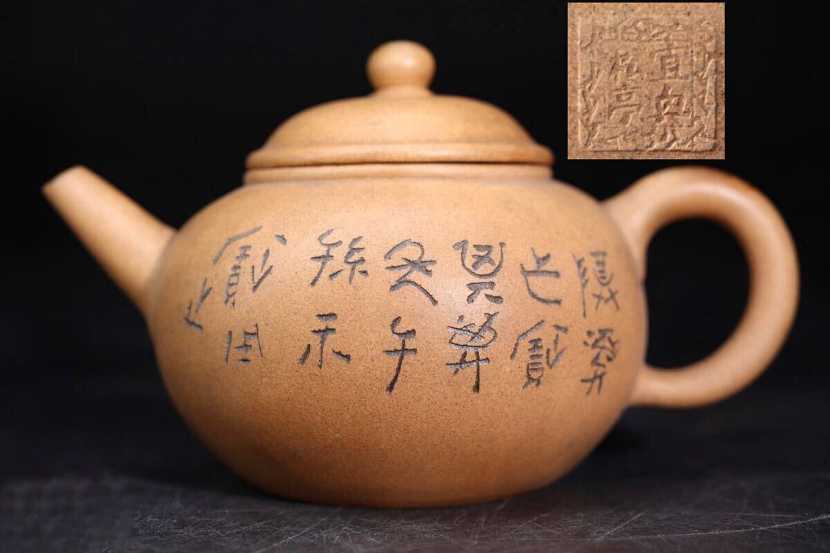 > 時代 宜興松亭 底款 白泥 漢詩紋 急須 / 中国美術 茶器 煎茶道具 検索: 朱泥 紫泥 紫砂 .G1875