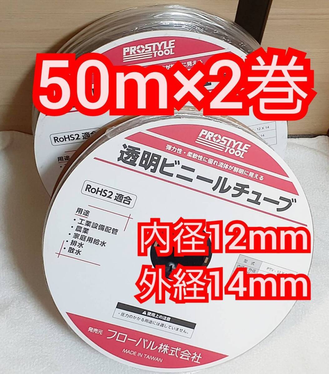 - 送料無料 プロスタイルツール 透明ビニールチューブ 透明チューブ 50m×2巻セット ビニールチューブ 内径12mm×外径14mm PTV-12×14 新品