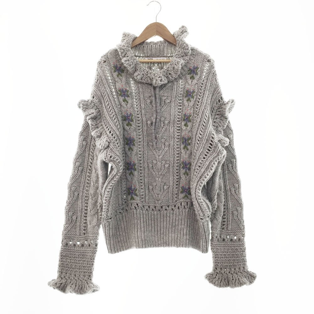 - ★ZARA ザラ 長袖 花柄 フリルネック ニット プルオーバー サイズS レディース ライトグレー セーター トップス アクリル 1BB/93134