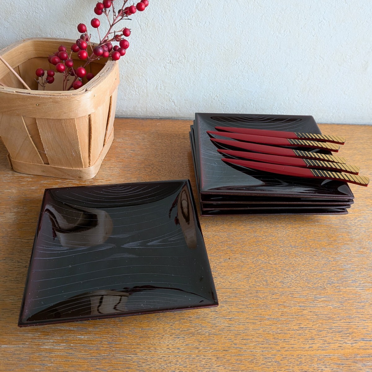 - 【未使用】 銘々皿 菓子器 菓子楊枝 5枚セット
