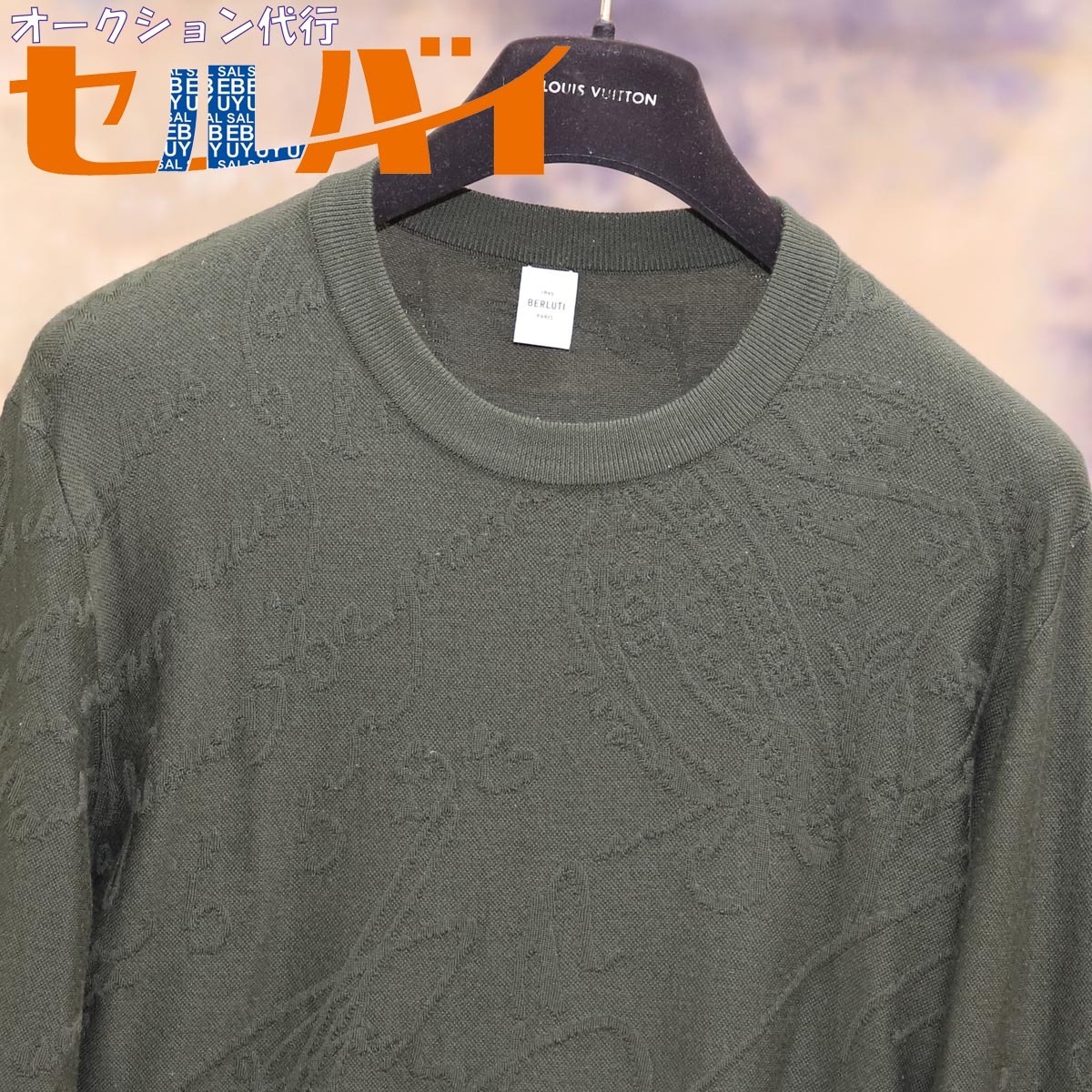 - 本物 超美品 ベルルッティ 絶盤 全面総スクリット スワイプ クルーネック ニットセーター メンズS 長袖 トップス ジャケット 国内正規品