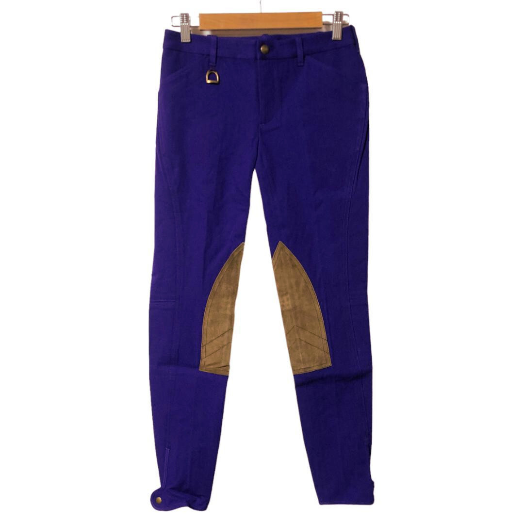 - RALPH LAUREN ラルフローレン ジョッキーパンツ レザーパッチ 膝当て 2 パープル ストレッチ テーパード ジップフライ レディース A12