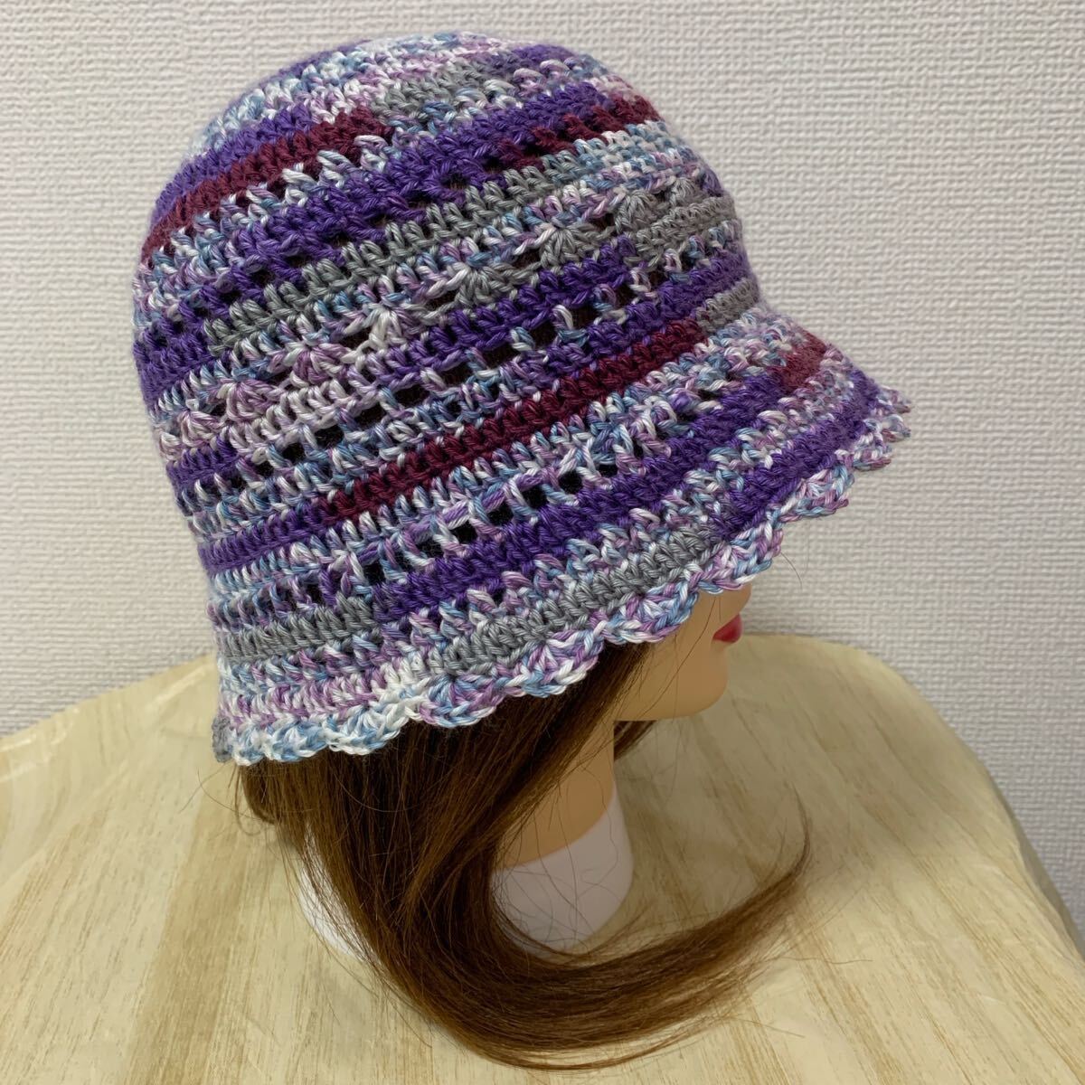- 【a116】ソックヤーン レース フリル グレープサイダー バケットハット 帽子