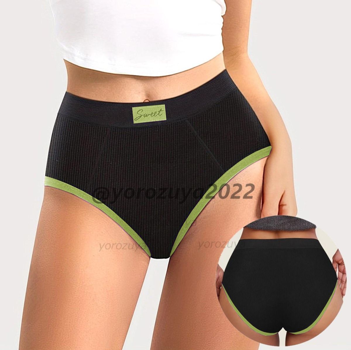 - 178-341-5 リブ ブリーフ ショーツ フルバック スポーティ【グリーン,Lサイズ】レディース 女性 下着 パンツ セクシー インナー パンツ .2