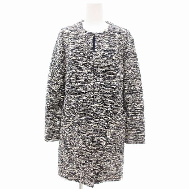 > シップス SHIPS ノーカラージャケット コート ミドル丈 ツイード リネン混 36 紺 ネイビー グレー /JS レディース