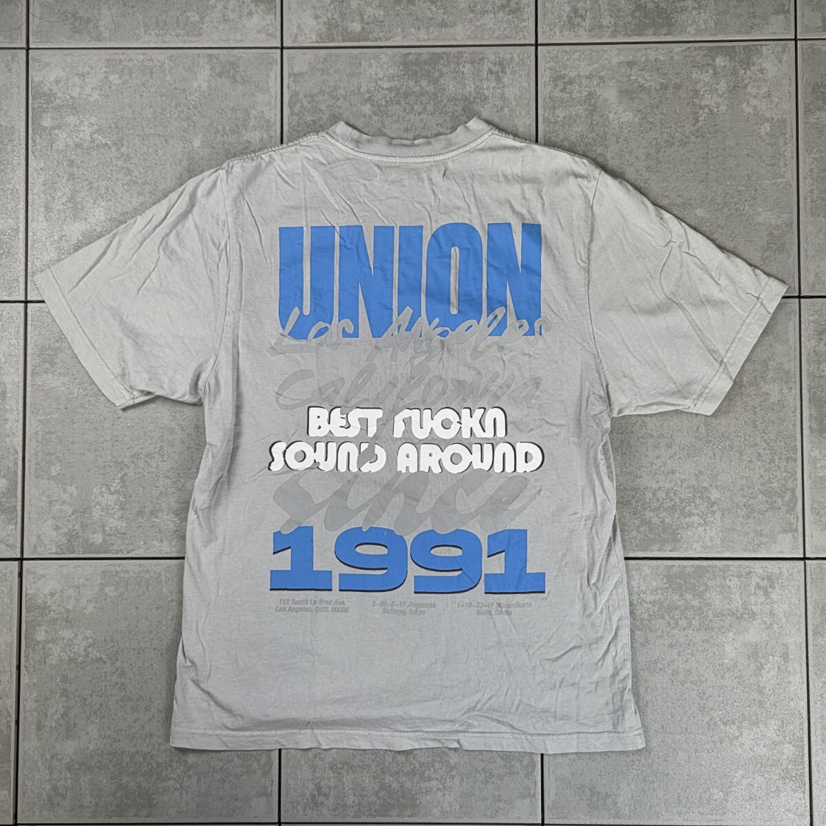 > 美品 24SS UNION CONTRAST S/S TEE ユニオン コントラスト プリント ロゴ 半袖 Tシャツ ヴィンテージウォッシュ グレー size 1 ピグメント