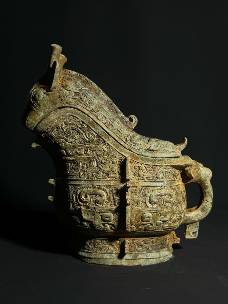 - 中国 商周 時代物 青銅器 尊 酒器 飾壺 置物 藏出 古銅製 西周 古美術 古置物 古玩 唐物 骨董 ky38