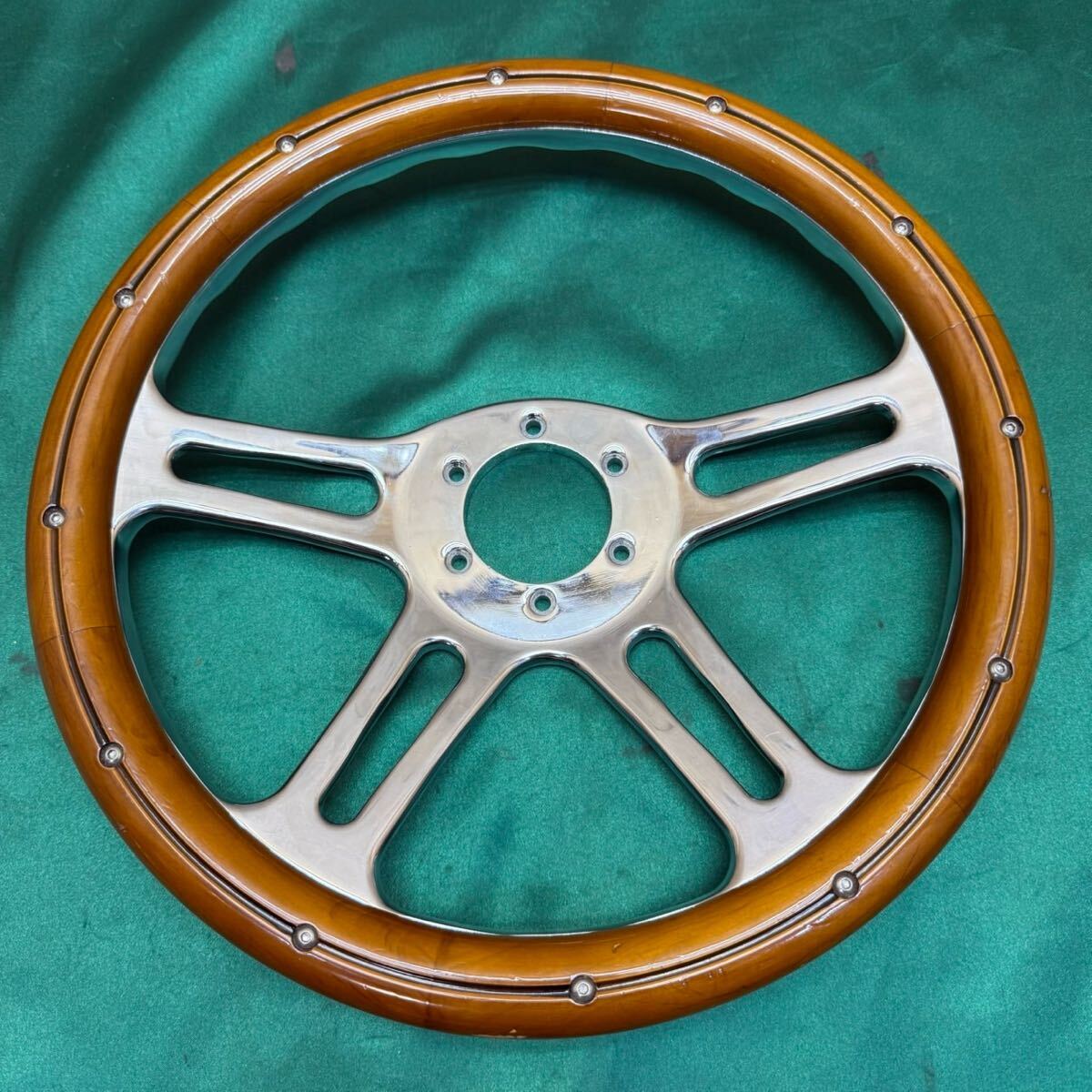 > 超希少? ウッド ステアリング ハンドル 34.5パイ 4本 スポーク リベット付 used in JAPAN ドリフト 旧車 キャル CAL R71324
