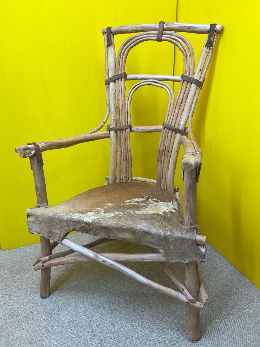 - 木製 チェア アフリカチェア 枝 曲木 椅子 ハンドメイド 一品物 アームチェア 中古品