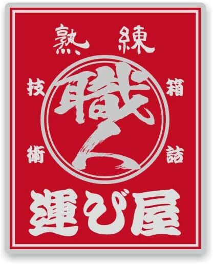 - シルバー 熟練運び屋ステッカー レッド 20×16cm 1枚トラック デコトラ 伝説 和風 和柄 シール 運送業 車 ワンポイント 前掛け