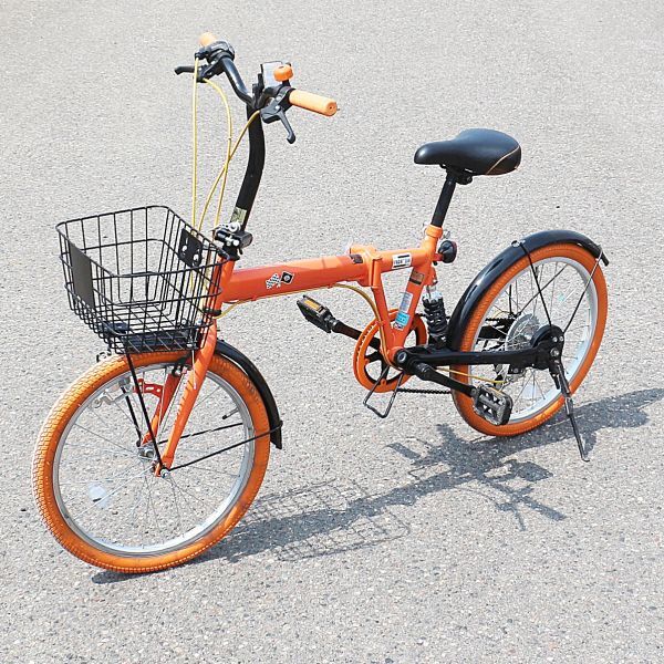 - 【新潟発】ハーレーダビッドソン 自転車 折り畳み オレンジ HARLEY-DAVIDSON サイクリング 買い物 旅行 短距離移動 中古 北陸