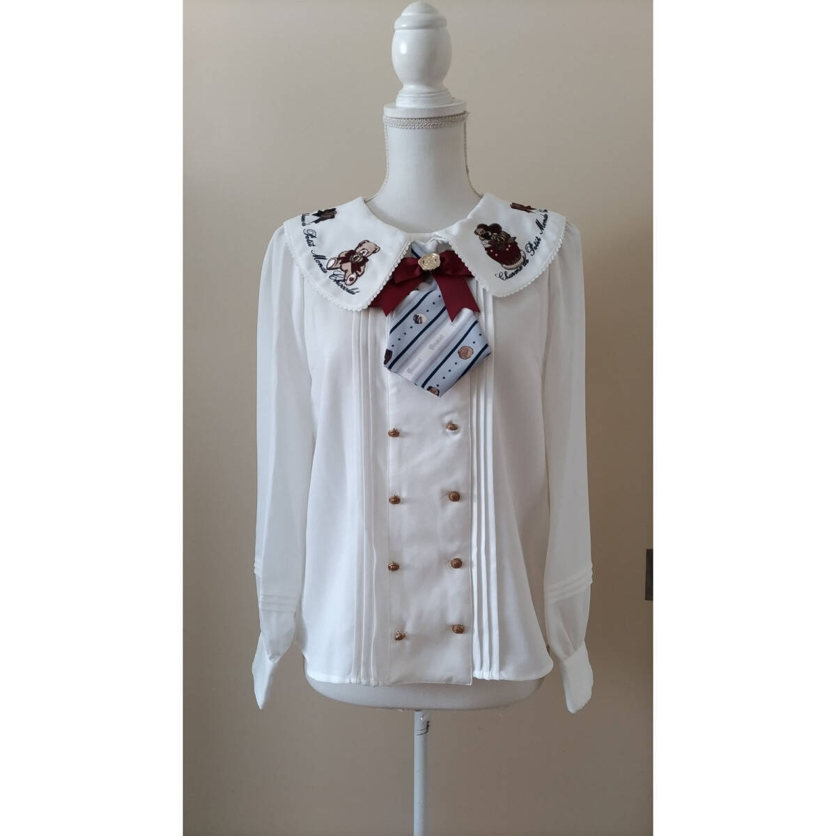 - No.2754_アマベル_白ネイビーくまリボン刺繍ブラウス