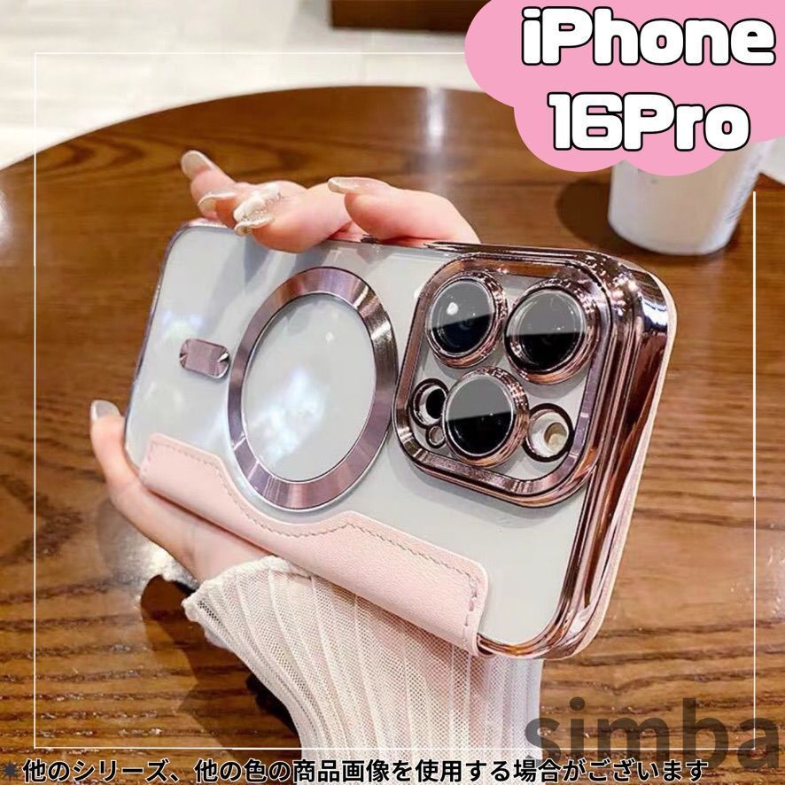 > iPhone 16 Pro ケース 手帳型 レザー調 MagSafe対応 高級感漂う背面クリア カード収納 韓国風 ピンク