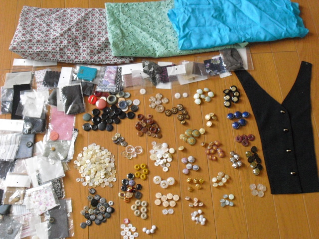 - 即決☆手芸 ボタン(ブラウス用 花】高級スーツワンピに付いていたボタン多数+付襟? +おまけ端切れ 小物 縫製 大量 激安 ホビーまとめ秋
