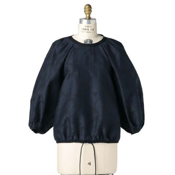 > 定82500円【ドゥロワー Drawer】フラワージャカードタックブラウス バルーンスリーブ ボリュームスリーブ ネイビー36 オケージョン