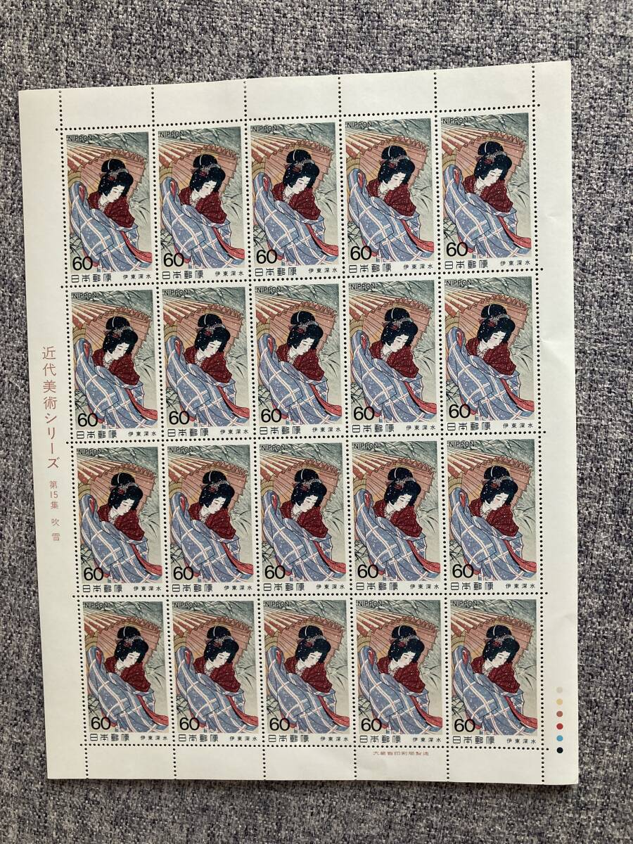 - ★未使用 近代美術シリーズ 第15集 吹雪 伊東深水 1983年 昭和58年 切手シート 60円 20枚 日本郵便