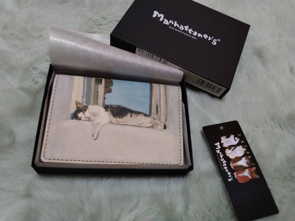 - レア柄★新品即決★マンハッタナーズ [よい眠り] 牛革 フェデリコ 猫 パスケース 定期入れ 名刺入れ