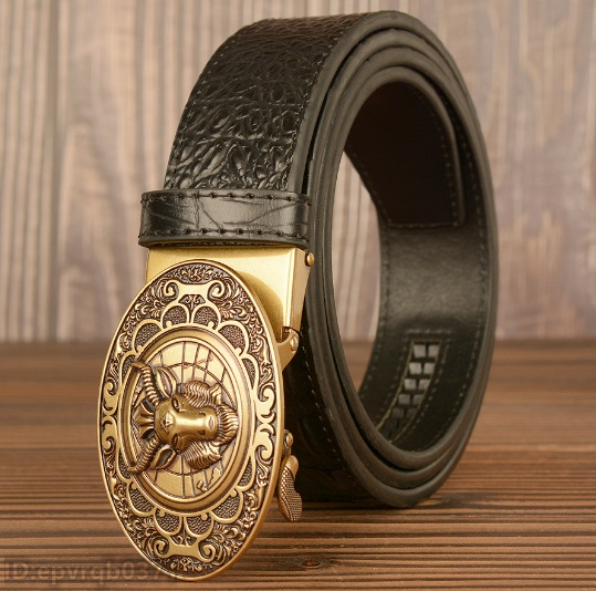- レザーベルト 新品 メンズベルト 本革 オートロック式 羊 金属バックル ワニ柄 幅3.5センチ 紳士用 長さ調整可能 /黒