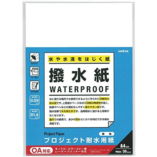 - オキナ 耐水紙 プロジェクト 撥水紙 A4 無地 30枚 PW3047