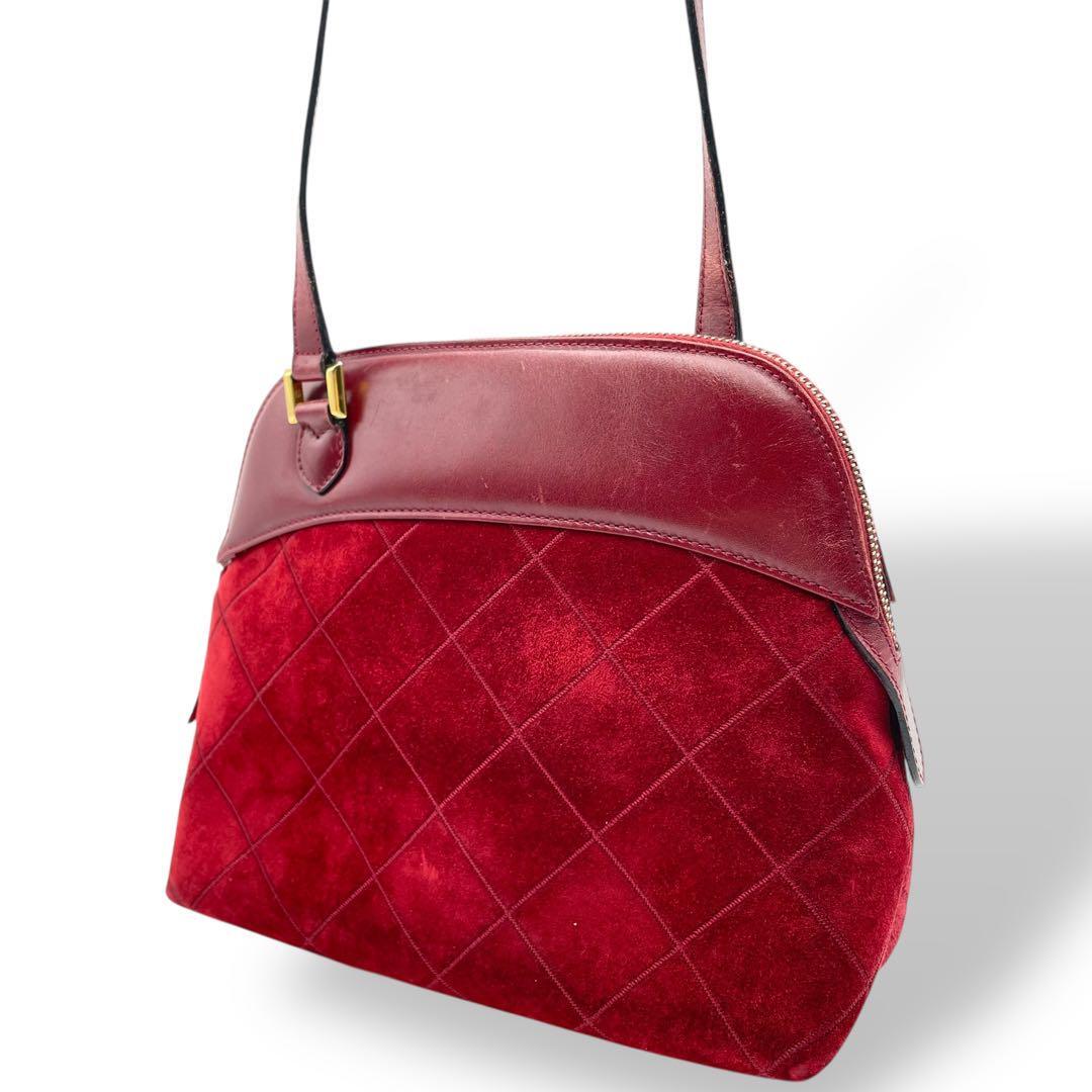 - 美品 Ferragamo ショルダーバッグ スエード レッド キルティング