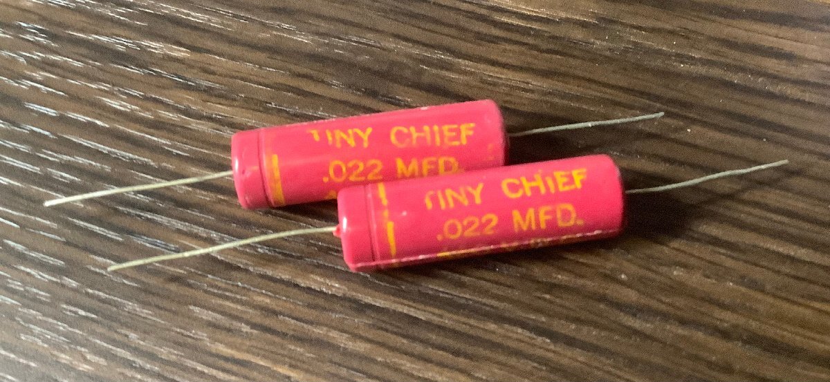 ビンテージコーネルTiny Chief コンデンサー2個セットです。ギターではハムのスタンダード数値、ボルトです。その他電子部品向け。コーネルコンデンサーTiny Chiefは良質で音がよく有名、人気です。CornellはSpragueと比べ、レンジが広く、高音方向まで伸び、明るい印象の良質な音です。Black Cat : スタンダードなバイト感、レンジが低音まで広く、枯れた感じが強い。Greenie : Black Catと似ているが、若干バイト感が強くうねる。Blackie : Greenieと似ているが、若干バイト感が強く、ワイルドな音質。Tiny Chief : レンジが若干低音少なめ、うねりが強い。ワイルドな音質。リペア一番人気。Maroon : Tiny Cheefと似ているが、よりレンジが広く、うねりも強い。Cub : スタンダードなバイト感、Black Beautyと似ているが若干明るい音質。----------------------------------------------------------------