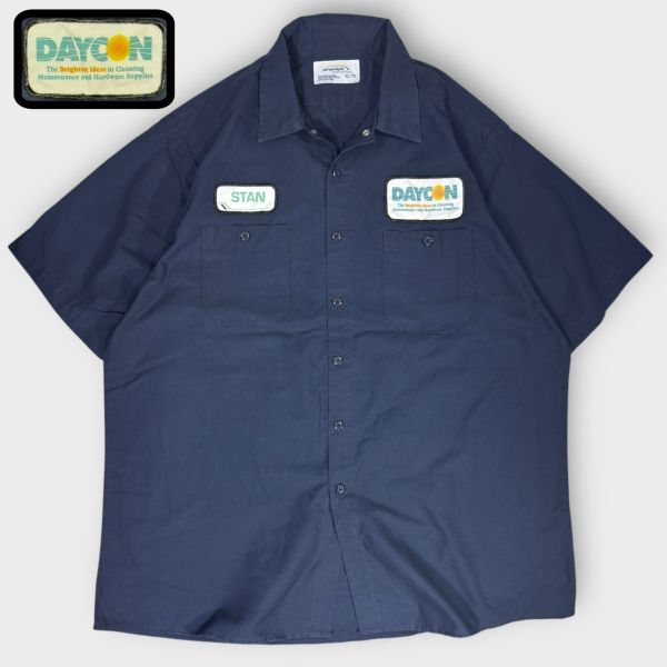 - ★DAYCONロゴ★Premium Uniforms 半袖ワークシャツ sizeXL 古着 クリーニング プレス済み 2310