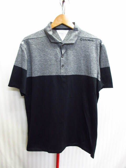 - テーラーメイド ポロシャツ メンズXO XXL バイカラー 黒グレー 襟付き半袖カットソー 速乾スポーツシャツ ゴルフウエア ゴルフシャツ07042