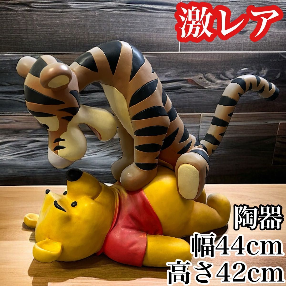 > 希少 くまのプーさん&ティガー 置物 フィギュア プーさん ぷーさん disney ディズニー 陶器 大型 アンティーク ディズニーストア 限定 玄関