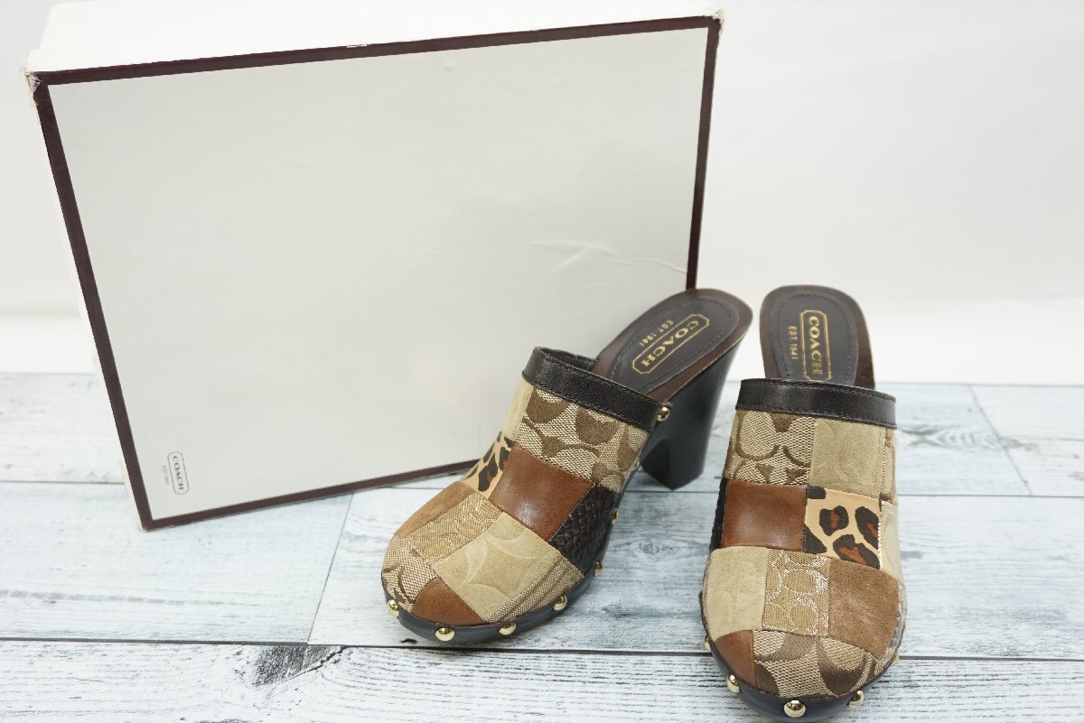 > ☆【B送900円】1977 COACH コーチ シグネチャー サボ サンダル ミュール スタッズ A0026 6M 箱付き