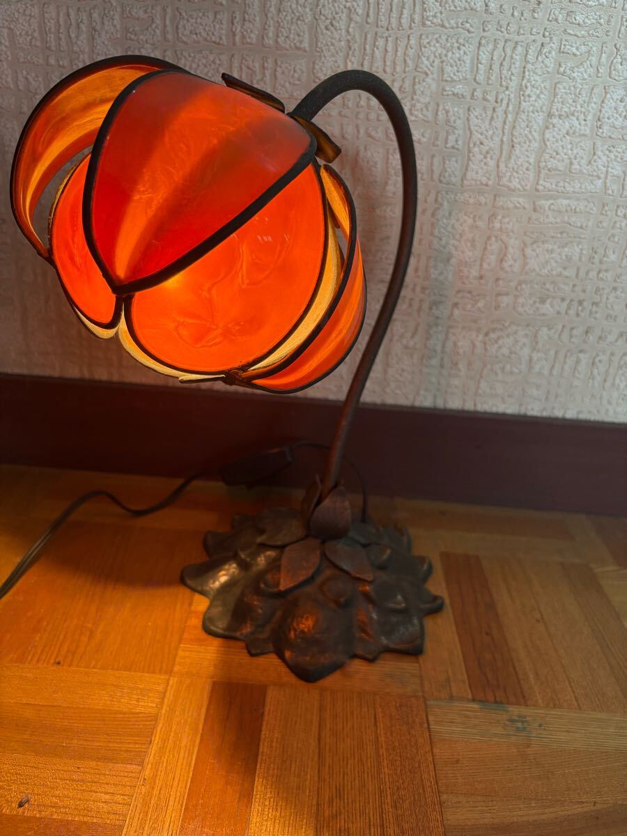 - レトロ 花型 照明スタンド アンティーク調 点灯確認済み テーブルランプ レトロ ステンドグラスランプ 卓上ランプ ライト アンティーク