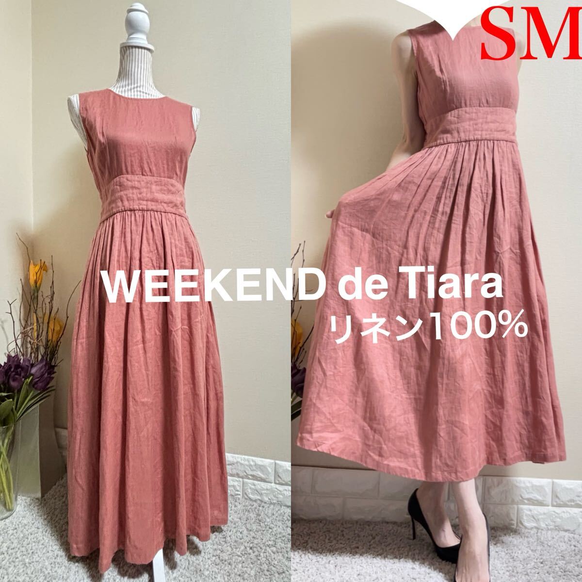 - ティアラ WEEKEND de Tiara TIARA リネン100 麻 ロングワンピース ワンサイズ コーラルピンク SM