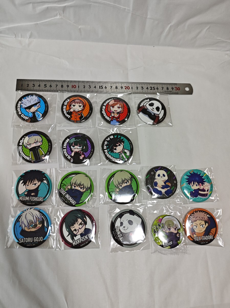 - 呪術廻戦 缶バッジ セット 大量 まとめ 売り 五条悟 虎杖悠仁 伏黒恵 狗巻棘 ローソン ゆるっとクッション イラスト グッズ デフォルメ