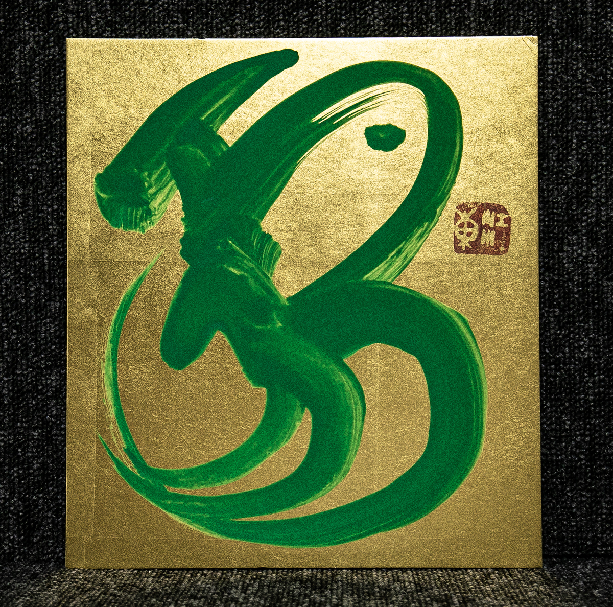 - 色紙ー1851 竹澤丹一 前衛書道家 金地色紙 広島県三次市【真作】
