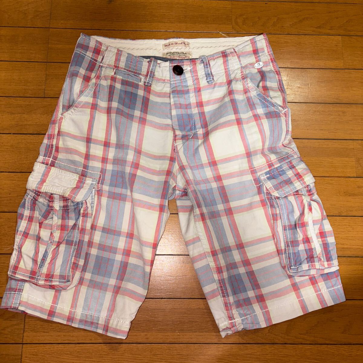 - スコッチ&ソーダ マドラスチェック 6ポケ カーゴ ハーフパンツ W29