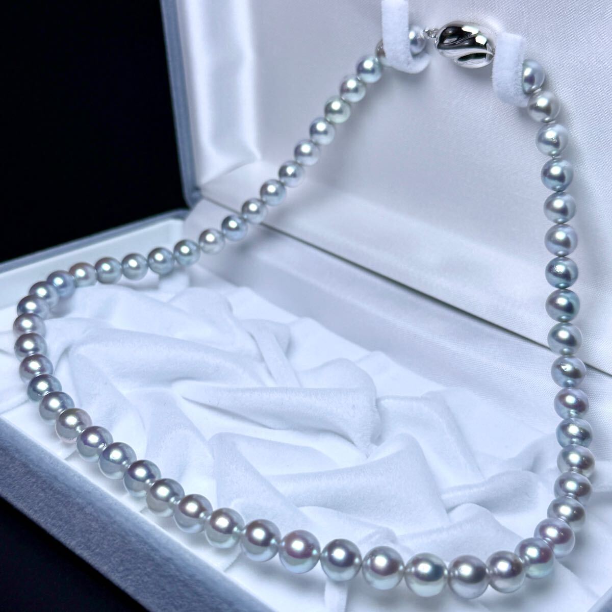 > オーロラ級 アコヤ真珠 ネックレス 7.00〜7.46㎜ 43.5㎝ 34.3g 本真珠 ブルーグレー パール アクセサリー pearl jewelry necklace