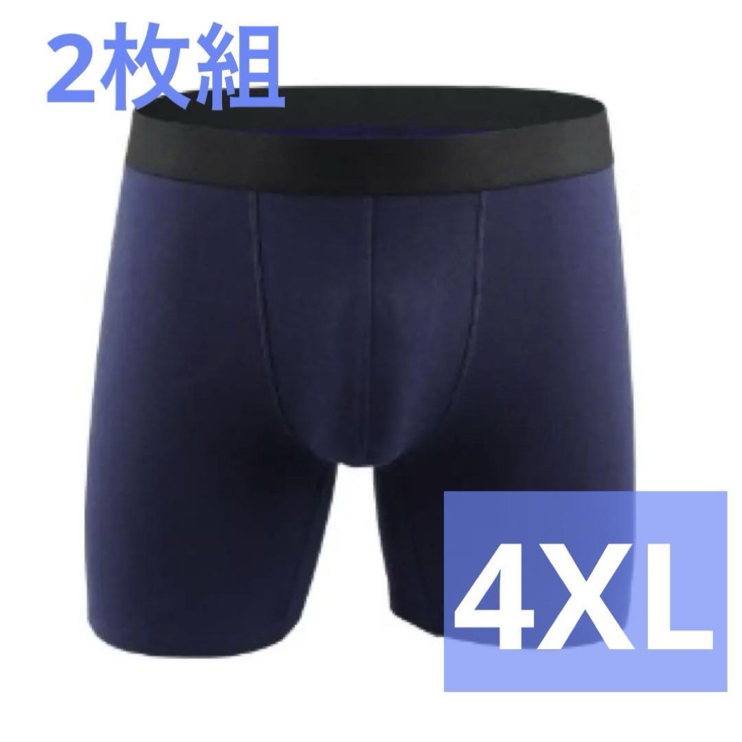 - 【ネイビー/4XL】2枚組 ボクサーパンツ 綿 吸水速乾 メンズ
